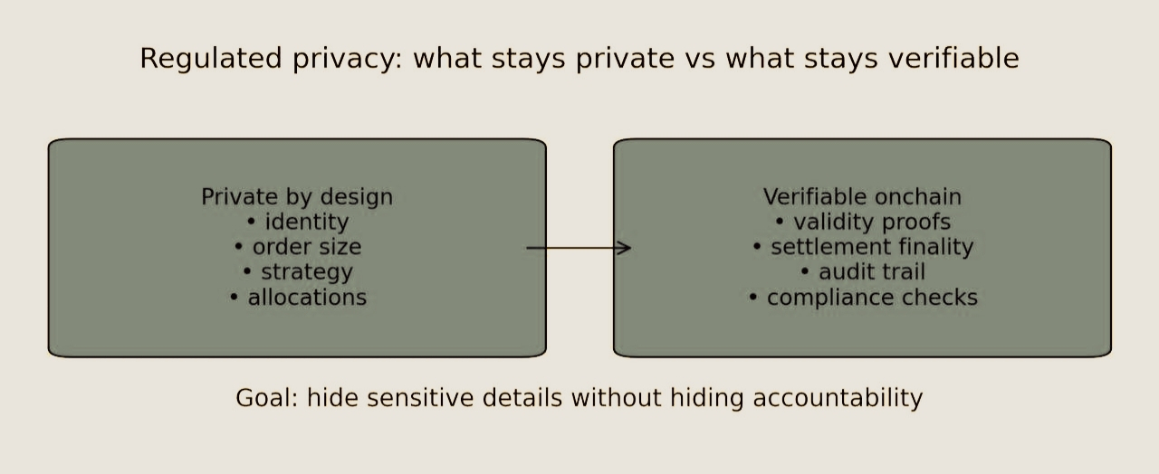 Most blockchains are built like glass offices: everything is visible, even when visibility is a liability. That’s fine for memes and simple transfers. It breaks the moment you try to run a real market. In regulated finance, information is not decoration, it’s edge. Expose identities, order sizes, allocations, or strategy and you don’t get “transparency,” you get front-running, compliance headaches, and participants who simply refuse to show up.