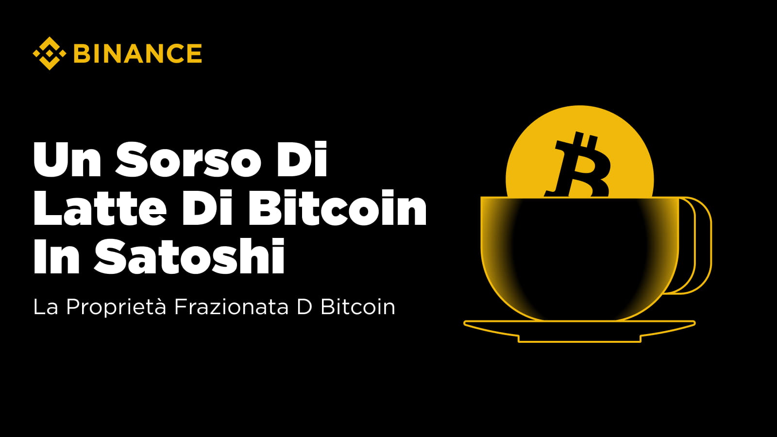 Comprare Bitcoin non deve sembrare un sogno irraggiungibile. Con i satoshi, puoi iniziare con piccoli importi, investendo una somma equivalente al costo di un caffè latte, un paio di scarpe o persino un weekend fuori porta. Ogni piccolo importo si somma agli altri e, prima inizi, più fette della torta Bitcoin potrai assicurarti man mano che cresce. Perché aspettare quando puoi iniziare oggi? Compra una piccola fetta di Bitcoin ora e ottieni fino a 20$ di bonus quando fai trading e detieni Bitcoin su Binance. Non aspettare il momento “perfetto” o un Bitcoin intero per fare il primo passo: inizia subito a sorseggiare, camminare, volare e accumulare i tuoi satoshi!
