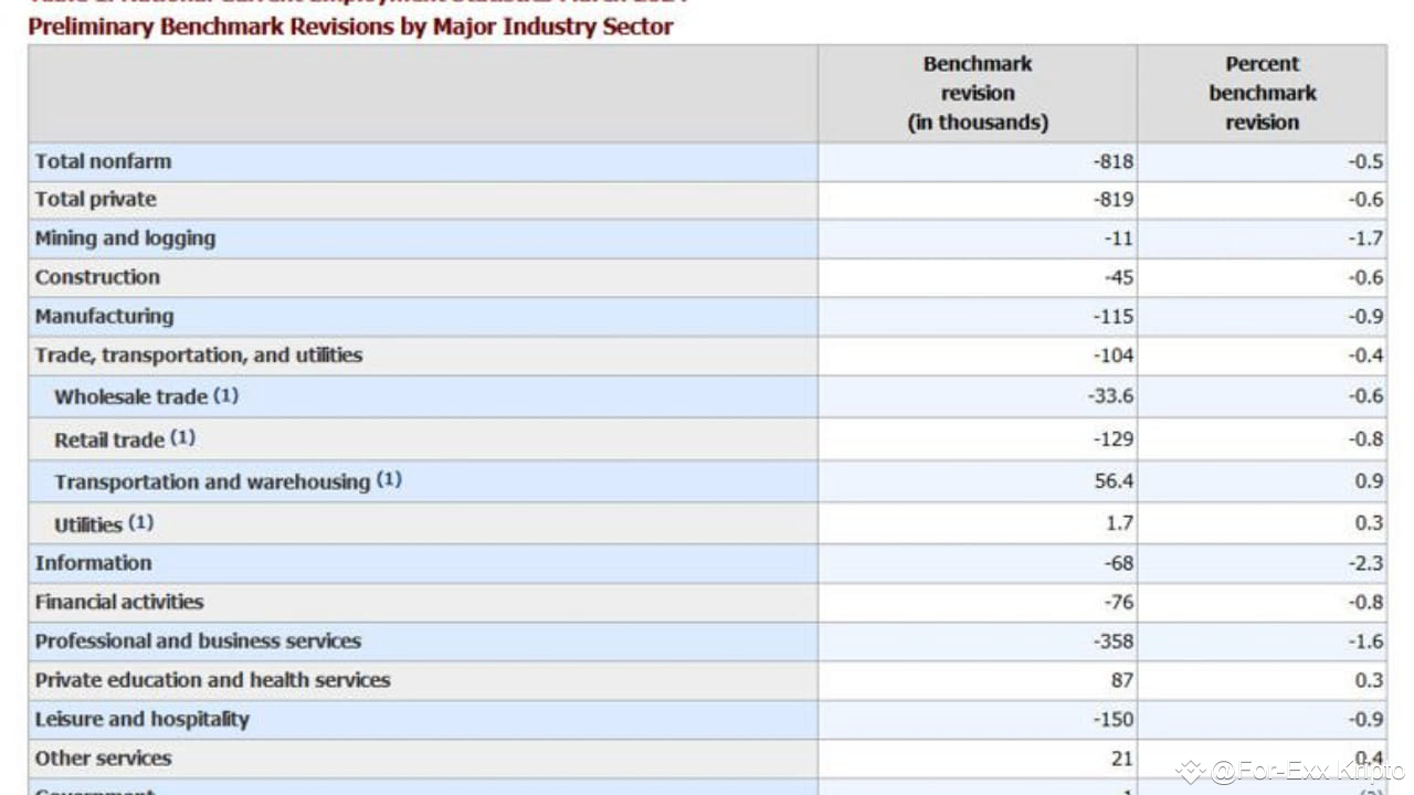 Le revisioni del benchmark sull’occupazione non agricola sono state riviste da +242.000 a -818.000...