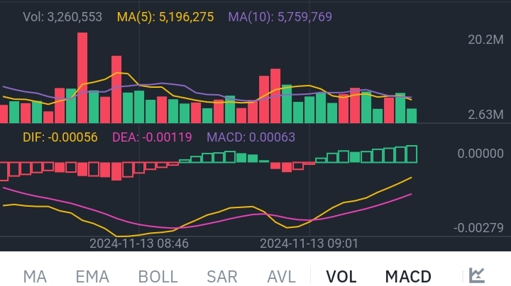 I valori di DIF e DEA sono vicini, indicando un debole crossover rialzista ma non ancora forte.