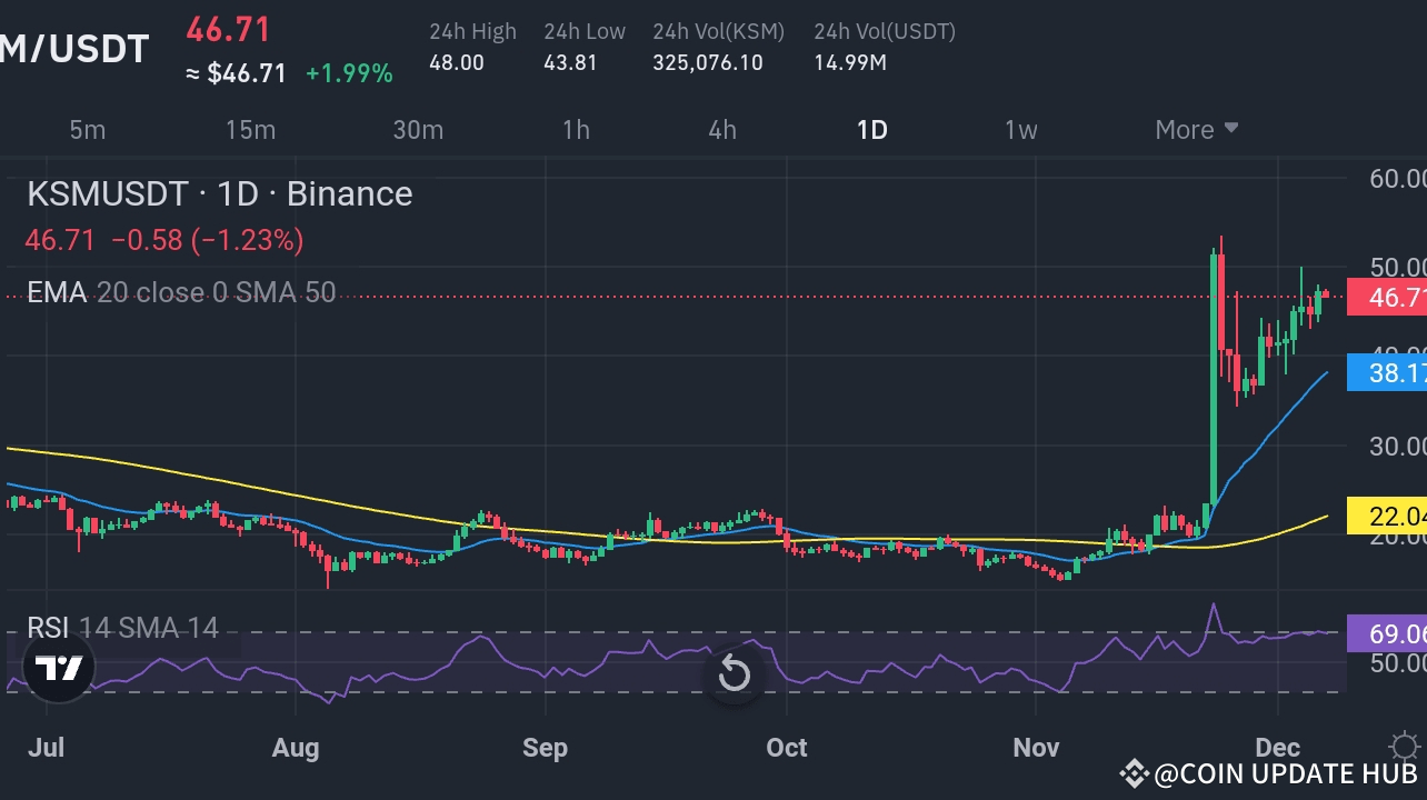 Volume: Un robusto volume di 24 ore di 325,076 KSM (circa $14.99M) indica una forte partecipazione al mercato.