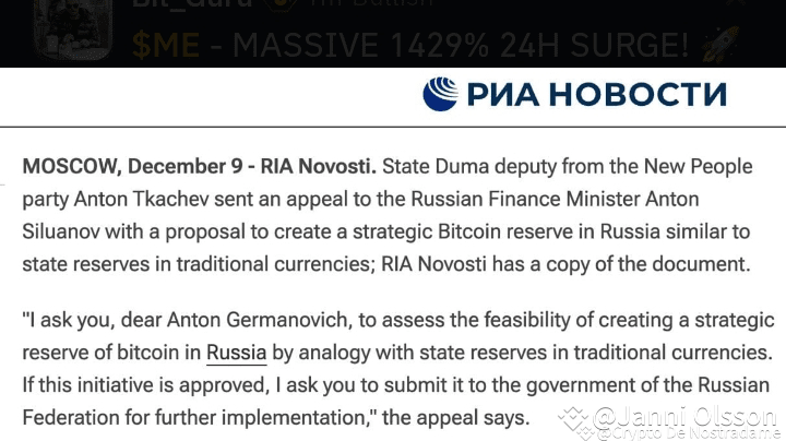 Inizialmente, erano i colossi tecnologici—Microsoft e Amazon—ad esplorare Bitcoin. Ora, anche stati sovrani come la Russia stanno entrando nel gioco, considerando Bitcoin come un asset di riserva strategico. Il mondo finanziario si sta evolvendo e Bitcoin sta assumendo un ruolo centrale come l'oro dell'era digitale.