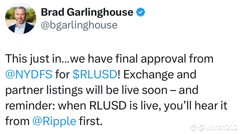 Appena ricevuto… abbiamo l'approvazione finale da @NYDFS per $RLUSD! Le liste di scambio e partner saranno attive presto – e un promemoria: quando RLUSD sarà attivo, lo sentirai prima da @Ripple.