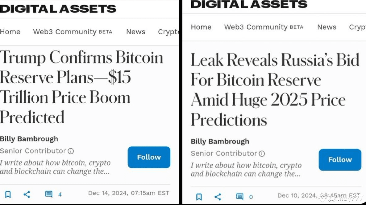 Parallelamente alla mossa degli Stati Uniti, anche le fughe di informazioni sul piano di riserva Bitcoin della Russia hanno attirato l'attenzione. Secondo le fonti, la Russia sta cercando di costruire un fondo di riserva Bitcoin per proteggere l’economia e creare una forza nel campo delle criptovalute. Si prevede che entro il 2025 il valore del Bitcoin raggiungerà numeri record, investire in Bitcoin aiuterà la Russia a ottenere un ulteriore vantaggio nella competizione economica globale.