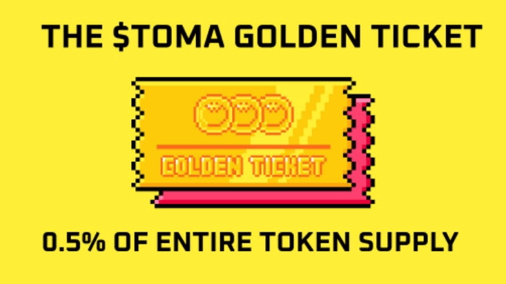 Siamo lieti di annunciare che lo 0,5% della fornitura totale di token $TOMA, pari a 5 MILIARDI di $TOMA, è stato riservato esclusivamente ai partecipanti al Golden Ticket. Questa allocazione sarà distribuita tra tutti i possessori come parte della ricompensa per la loro partecipazione a questa speciale iniziativa.