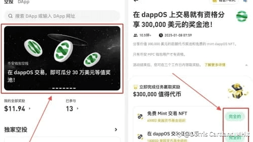 Per attrarre più utenti a sperimentare la piattaforma intentEX di dappOS, gli utenti del Binance Web3 Wallet possono ricevere token airdrop completando una serie di semplici interazioni. Questi token non solo forniscono guadagni extra agli utenti, ma possono anche essere utilizzati per pagare le commissioni di transazione, riducendo ulteriormente i costi di transazione.