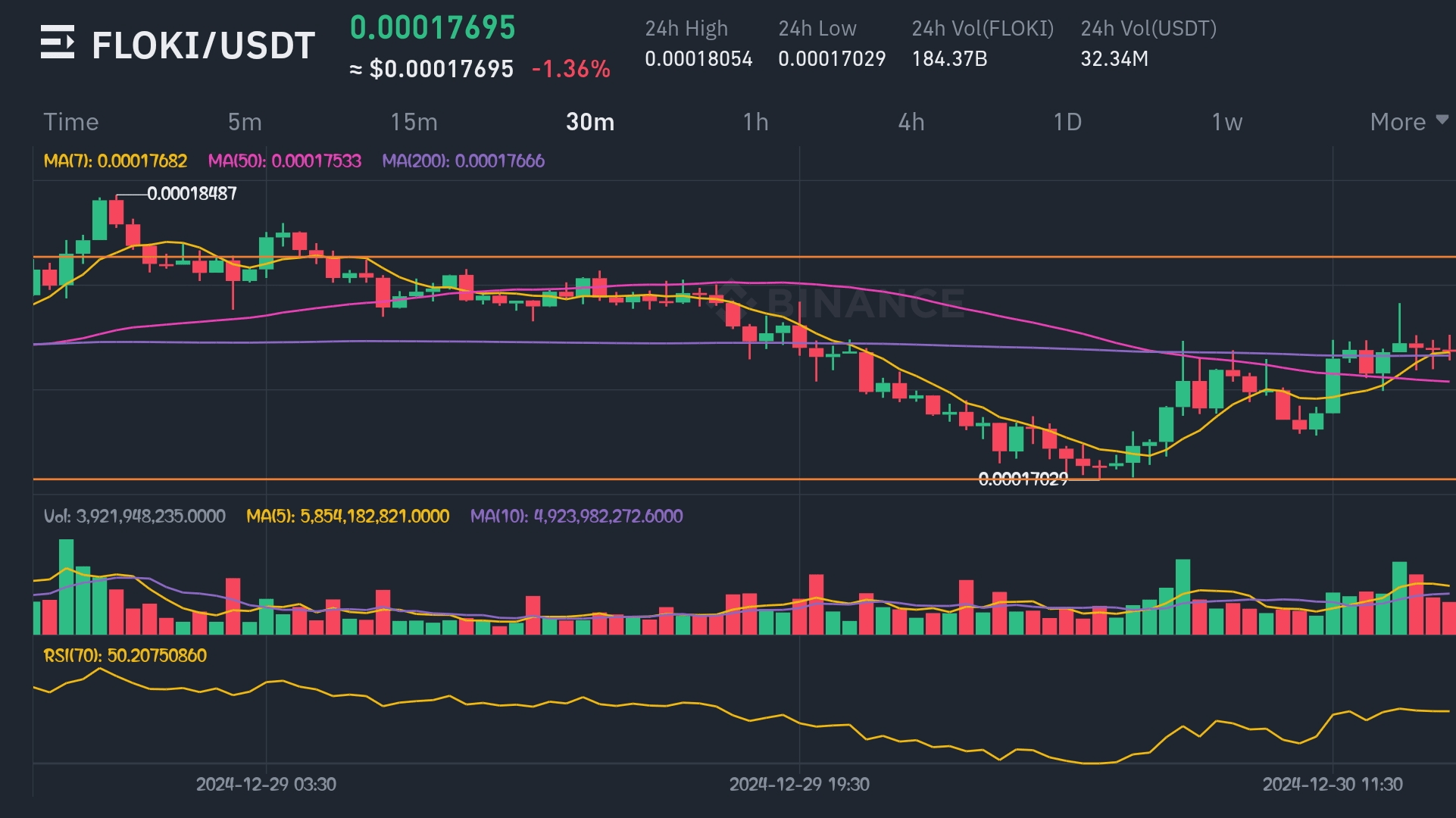 RSI: Se l'RSI supera 70, FLOKI potrebbe essere ipercomprato, segnalando una potenziale correzione.