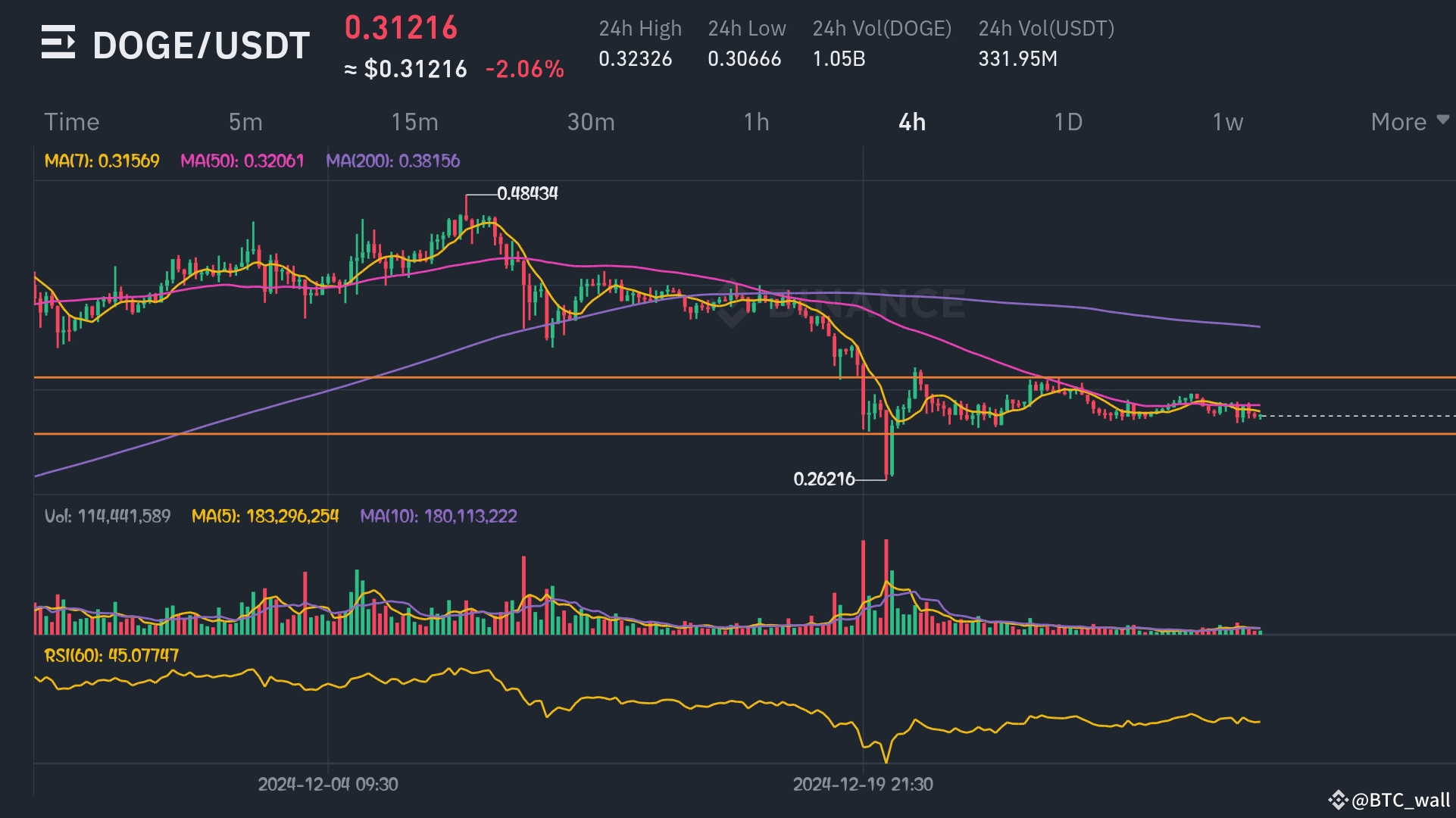 Media Mobile a 200 giorni: Fornisce un livello di supporto a lungo termine, e se il prezzo rimane sopra di esso, DOGE potrebbe continuare a salire.