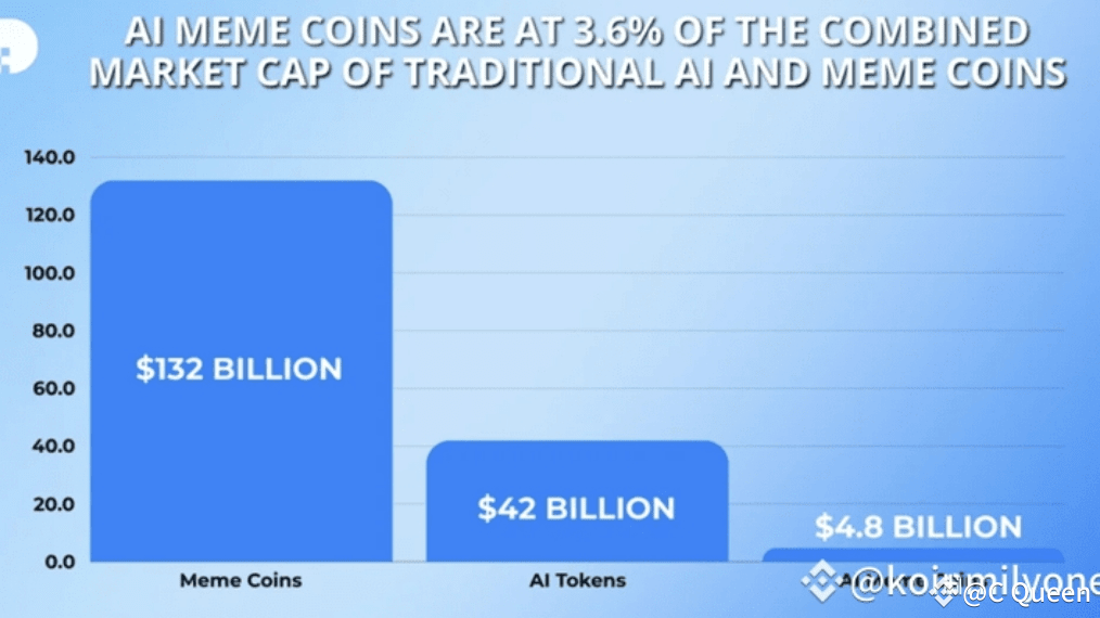 I dati sulla capitalizzazione di mercato evidenziano una chiara divisione tra memecoin tradizionali, token $AI e memecoin $AI . Ecco una suddivisione del panorama attuale e cosa implica per investitori ed appassionati: