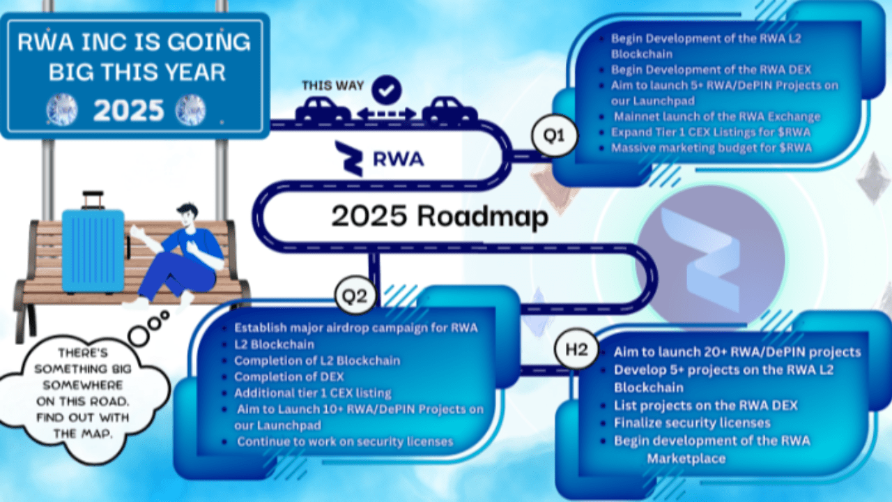 La roadmap che stiamo attualmente seguendo è chiaramente impostata per un grande successo. Con una visione audace per la tokenizzazione dei beni del mondo reale, #RWAInc Inc. ha sviluppato una roadmap completa per il 2025 progettata per rivoluzionare il settore.