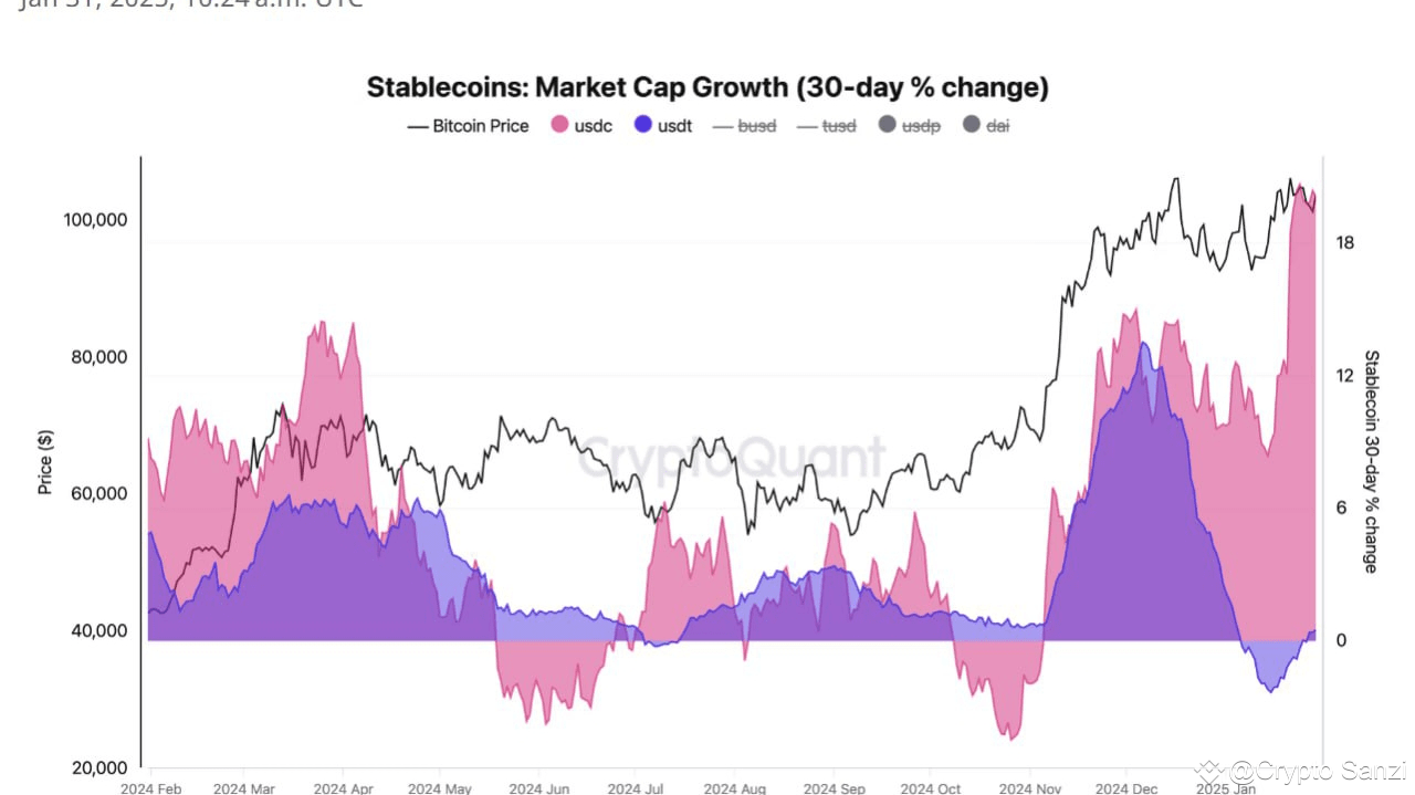 🔹 La liquidità dell'USDC è aumentata del 20%, il più veloce aumento in un anno.