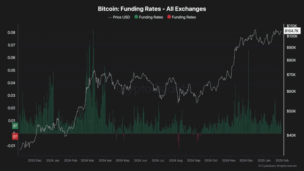 Particolarmente, uno dei principali ostacoli affinché il prezzo di Bitcoin superi i $108.000 è la mancanza di forte entusiasmo di mercato, come riflesso nei tassi di finanziamento. Secondo Shayan, tipicamente, l'aumento dei tassi di finanziamento indica un aumento delle posizioni lunghe e dell'ottimismo di mercato.