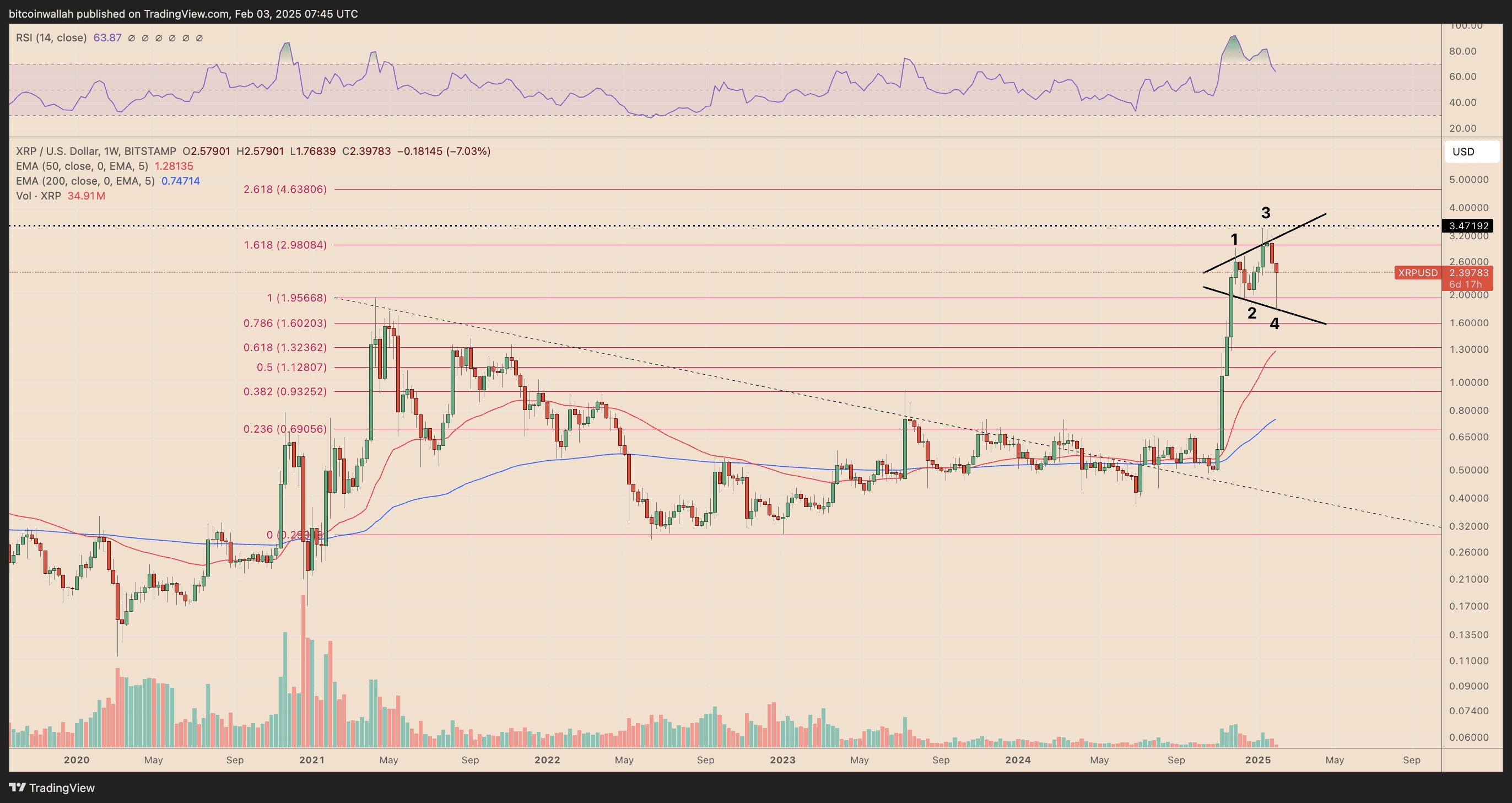 Dopo essere sceso a $1.95 a causa di liquidazioni più ampie nel mercato, XRP ha trovato un forte supporto vicino a $1.75 e ha invertito bruscamente, riprendendo il livello di $2.39 al momento della scrittura. L'azione del prezzo suggerisce che gli acquirenti accumulano durante i ribassi, rafforzando il momentum rialzista nonostante le incertezze macroeconomiche.Un modello a megafono in espansione, una formazione tecnica caratterizzata da oscillazioni di prezzo crescenti e maggiore volatilità, ha plasmato il grafico settimanale di XRP, segnalando un aumento della volatilità dei prezzi.#MarketPullback #xrp #XRPPredictions