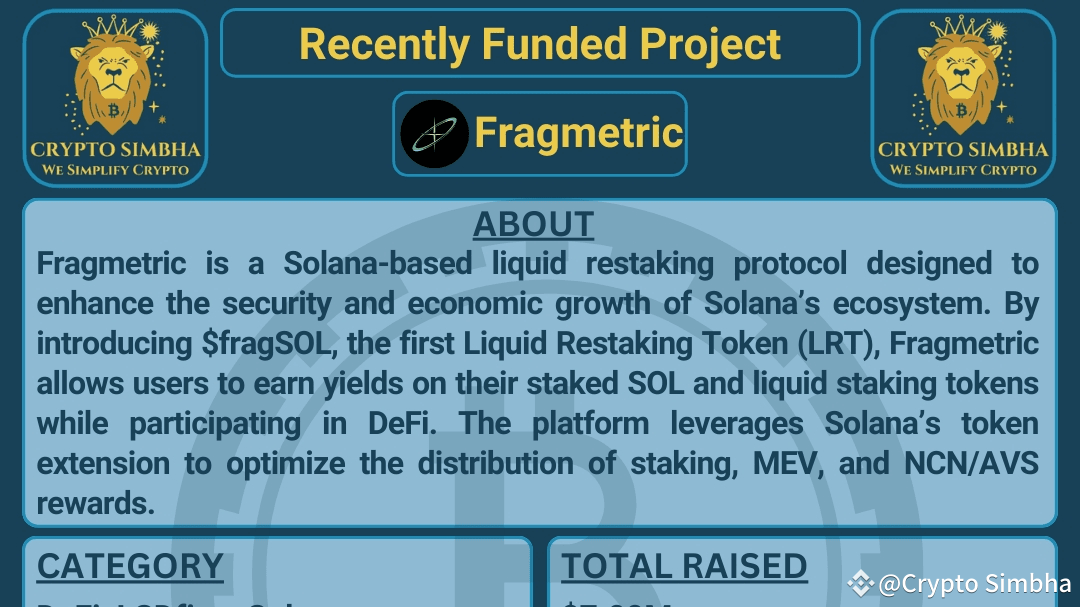 🔹Informazioni: Fragmetric è un protocollo di restaking liquido basato su Solana progettato per migliorare la sicurezza e la crescita economica dell'ecosistema di Solana. Introducendo $fragSOL, il primo token di restaking liquido (LRT), Fragmetric consente agli utenti di guadagnare rendimenti sui loro token SOL e staking liquido in stake mentre partecipano a DeFi. La piattaforma sfrutta l'estensione del token di Solana per ottimizzare la distribuzione di ricompense di staking, MEV e NCN/AVS. Gli utenti possono utilizzare $fragSOL come garanzia, fornire liquidità o fare trading su exchange decentralizzati (DEX). Fragmetric mira a costruire un ecosistema di restaking solido tramite LRT standardizzati e contributi della comunità. Il protocollo collabora anche con Sonic per gestire nodi dedicati all'interno dell'HyperGrid Shared State Network (HSSN) di Solana, garantendo scambi atomici senza interruzioni e prevenendo collisioni di stato. Inoltre, Fragmetric sta sviluppando un SDK pubblico per aiutare gli sviluppatori di dApp a integrare i protocolli di restaking e sicurezza dei dati nei loro progetti. Con il suo approccio innovativo, Fragmetric è destinato a rivoluzionare il modo in cui i Liquid Restaking Token vengono utilizzati sulla blockchain.🚀🌐