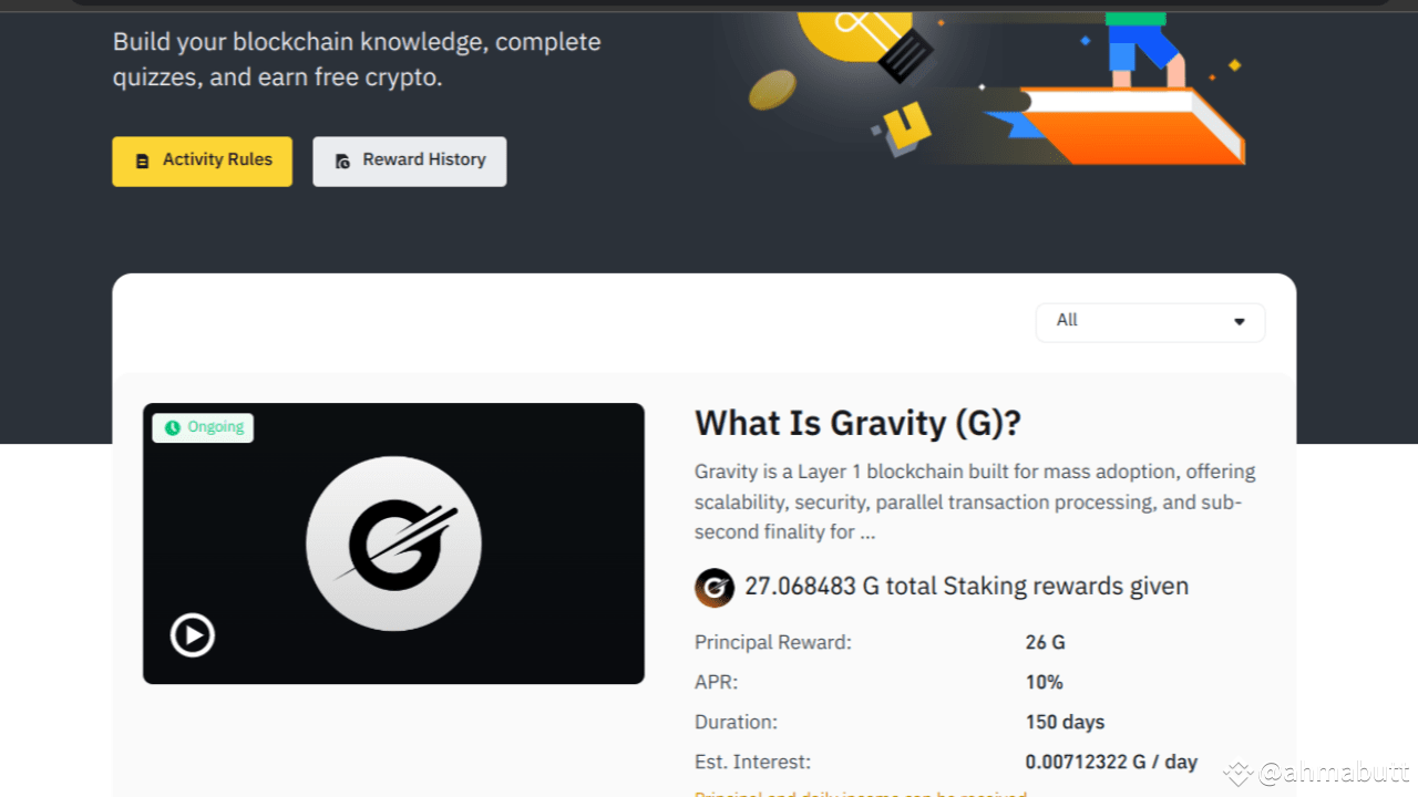 Puoi vedere qui nello ScreenShot qui sotto dove circa (27 G coin) ho guadagnato oggi, puoi anche guadagnare vedendo questa attività che Binance ha introdotto che è (Guadagna criptovalute gratuite attraverso l'apprendimento)