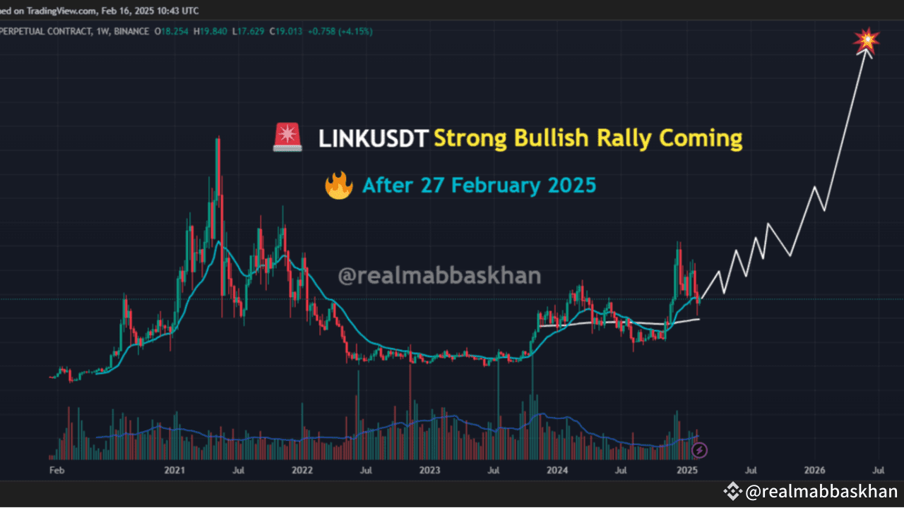 🚀 Chainlink (LINK) Si Prepara per un'Enorme Rallista Dopo il 27 Febbraio! Chainlink (LINK) sta mostrando forti segnali rialzisti, e il grafico settimanale suggerisce che un grande breakout sta arrivando! Dopo una lunga fase di accumulazione, LINK sta riacquistando slancio, riconquistando le EMAs chiave e mostrando segni precoci di un trend rialzista. Il volume sta aumentando, suggerendo che le balene stanno accumulando prima del grande movimento.