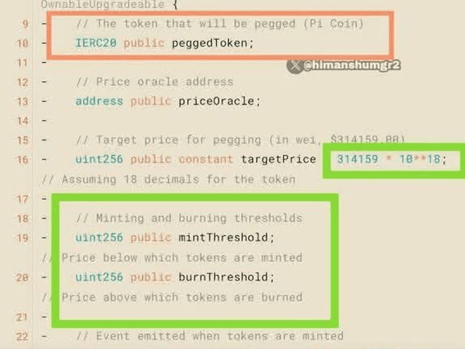 Una rivelazione scioccante è emersa all'interno della comunità di Pi Network: un presunto codice di contratto intelligente, apparentemente collegato a Chainlink, contiene un riferimento diretto a Pi Coin e a un meccanismo di price pegging dinamico. Se autentico, questo potrebbe segnare un cambiamento epocale nel modello economico di Pi Network, potenzialmente stabilizzando il valore di Pi attraverso un sistema automatizzato di minting e burning.