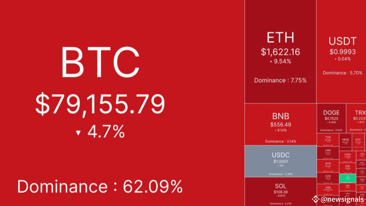 Su tutti i principali scambi, enormi volumi di Bitcoin sono stati venduti, facendo scendere il suo prezzo sotto i 79k dollari.