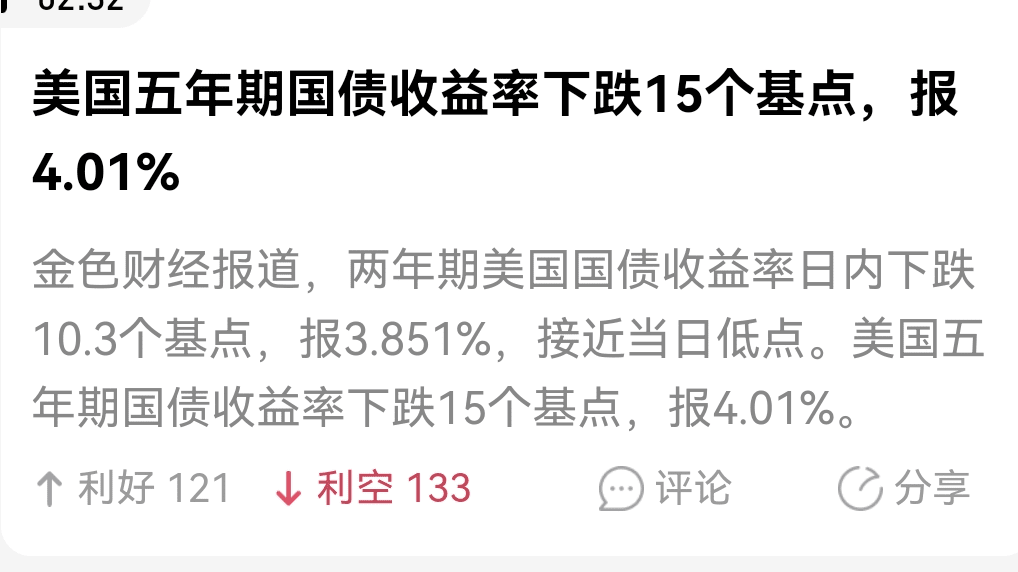 Il rendimento dei titoli di stato a due (cinque) anni degli Stati Uniti è sceso di 10 punti base (cioè 0,1%), riflettendo generalmente le aspettative del mercato su una crescita economica rallentata o un allentamento della politica monetaria. L'impatto di questa variazione sui diversi settori, sul mercato azionario e sulle criptovalute può essere analizzato da diversi punti di vista: