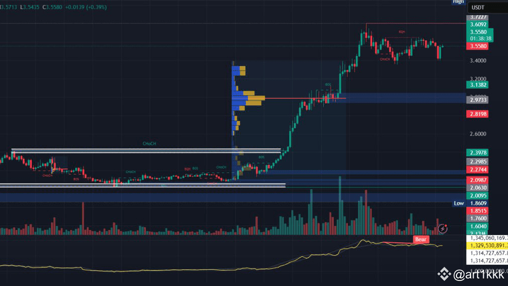 - CHoCH Giù da 3.5580 USDT: segnale di raffreddamento a breve termine prima del prossimo spinta.