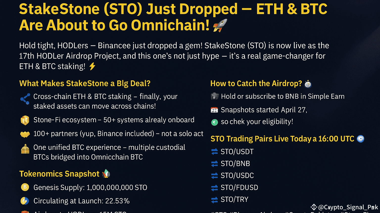 #STO #BinanceHODLerSTO #CryptoPakistan #StoneFi #OmnichainStaking