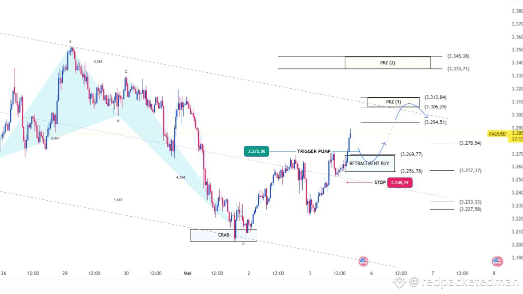 Aspetta un ritracciamento verso la zona d'acquisto per un ingresso più sicuro. Entra long con stop sotto i recenti minimi. Primo TP a PRZ 1, secondo TP a PRZ 2 per obiettivi estesi.