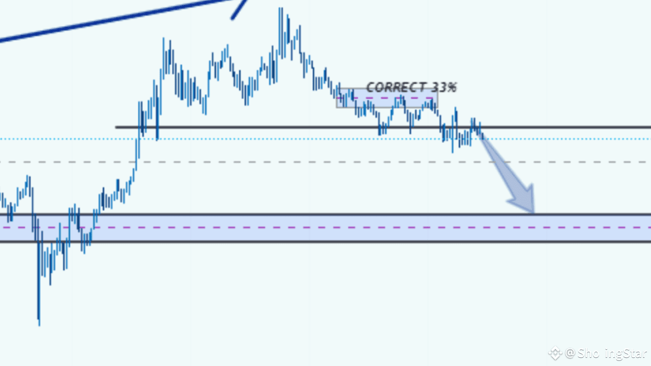 Momento Ribassista: Una grande freccia indica il bias direzionale verso il basso, allineandosi con la correzione e il sentiment di mercato.