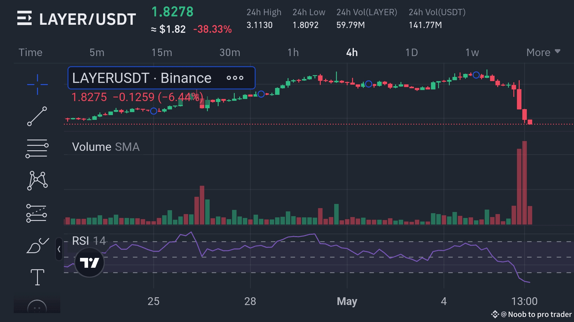 Oggi, nel mercato delle criptovalute, abbiamo visto una grande sorpresa al mattino. $LAYER - che fino a pochi giorni fa era in un forte trend rialzista - è crollato all'improvviso. Il prezzo è sceso drasticamente, passando da $3,43 a $1,82. Questo rappresenta un calo di circa il 47% dai recenti massimi. Solo in 24 ore abbiamo visto una perdita del 38%.