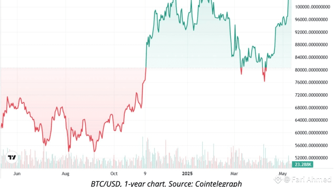 Bitcoin (BTC) scambia vicino a $103.918, solo 4,8% al di sotto del suo massimo storico