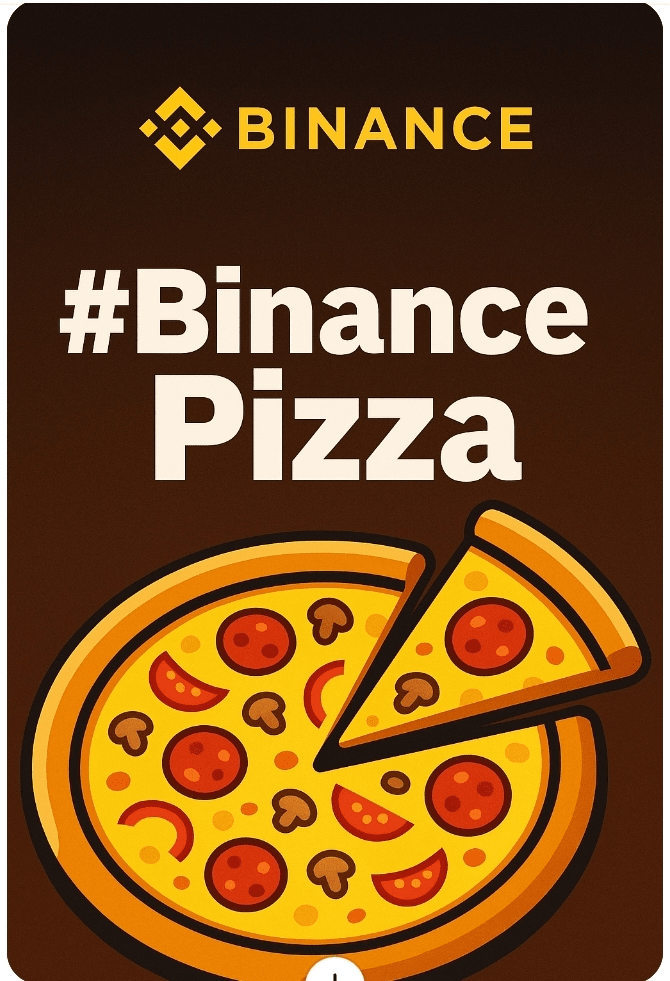 Ora stiamo generando un'immagine audace e divertente con il logo di Binance, pizza e vibrazioni crypto...