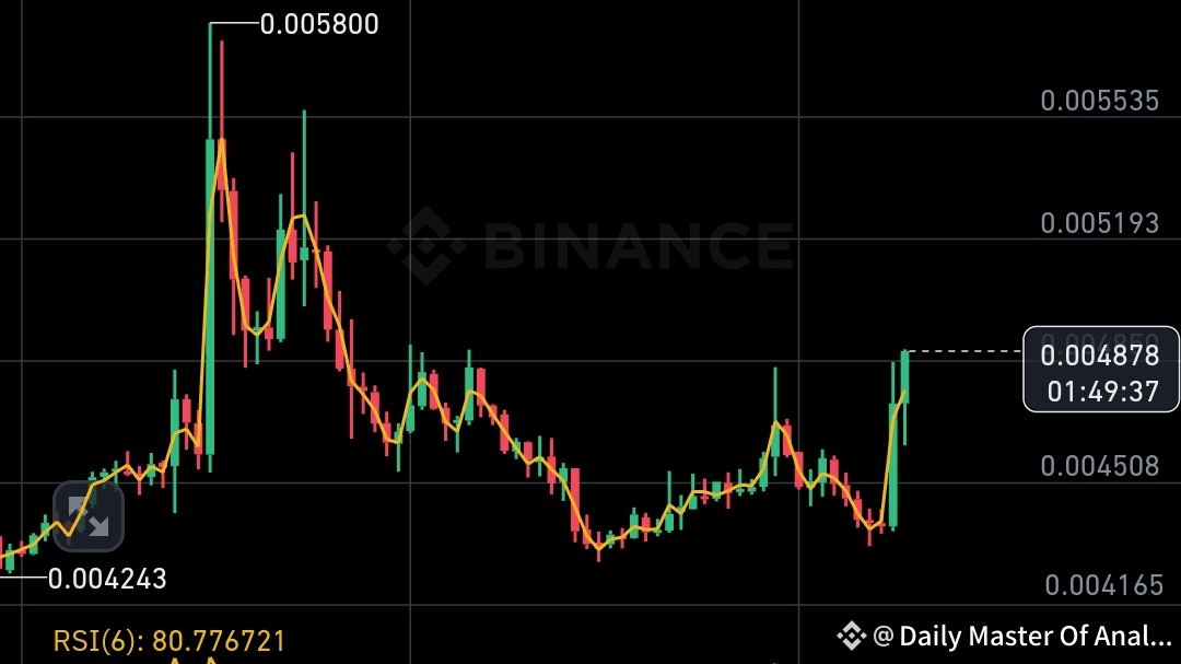 AMP sta mostrando segnali rialzisti in tutto il panorama—forza RSI, incrocio MACD, volume in aumento e un incrocio MA rialzista. Se supera $0.0058, si apre la porta a $0.0065+ e oltre.