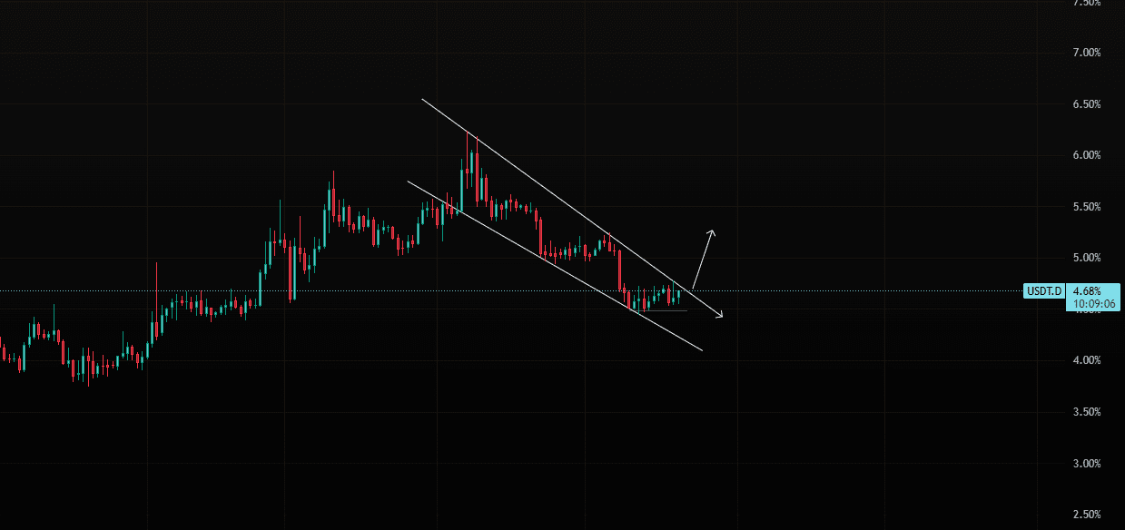 USDT.D ha un bellissimo Falling Wedge, che probabilmente romperà e vedremo una bella correzione.