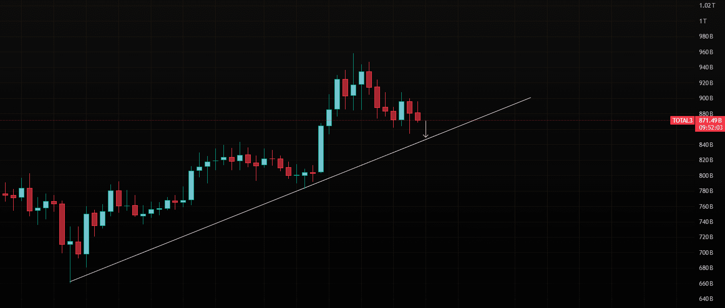 TOTAL3 dovrebbe scendere verso la sua trendline mentre la correzione viene eseguita.