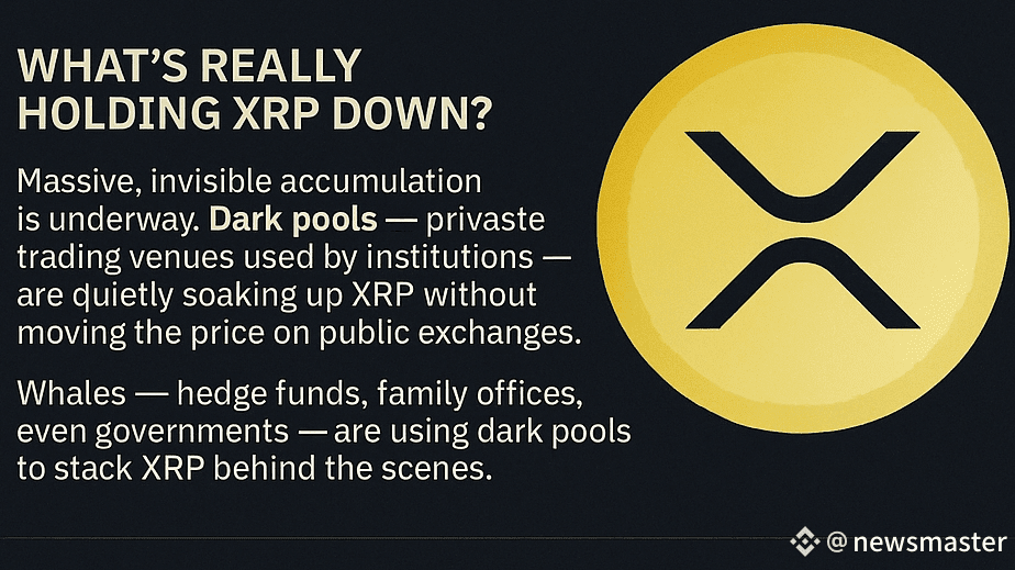 Nonostante tutte le notizie rialziste, il prezzo di XRP sembra congelato. Il motivo? Un'enorme accumulazione invisibile è in corso. Le piscine oscure — luoghi di trading privati utilizzati dalle istituzioni — stanno silenziosamente assorbendo XRP senza muovere il prezzo sugli scambi pubblici.