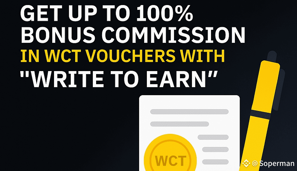 Siamo entusiasti di introdurre un nuovo incentivo per i partecipanti all'iniziativa “Write to Earn”. Da ora fino al 30 giugno 2025 (UTC), i creatori che condividono contenuti WCT idonei possono guadagnare fino al 100% di commissioni bonus sulle spese di trading sotto forma di voucher di token WCT!