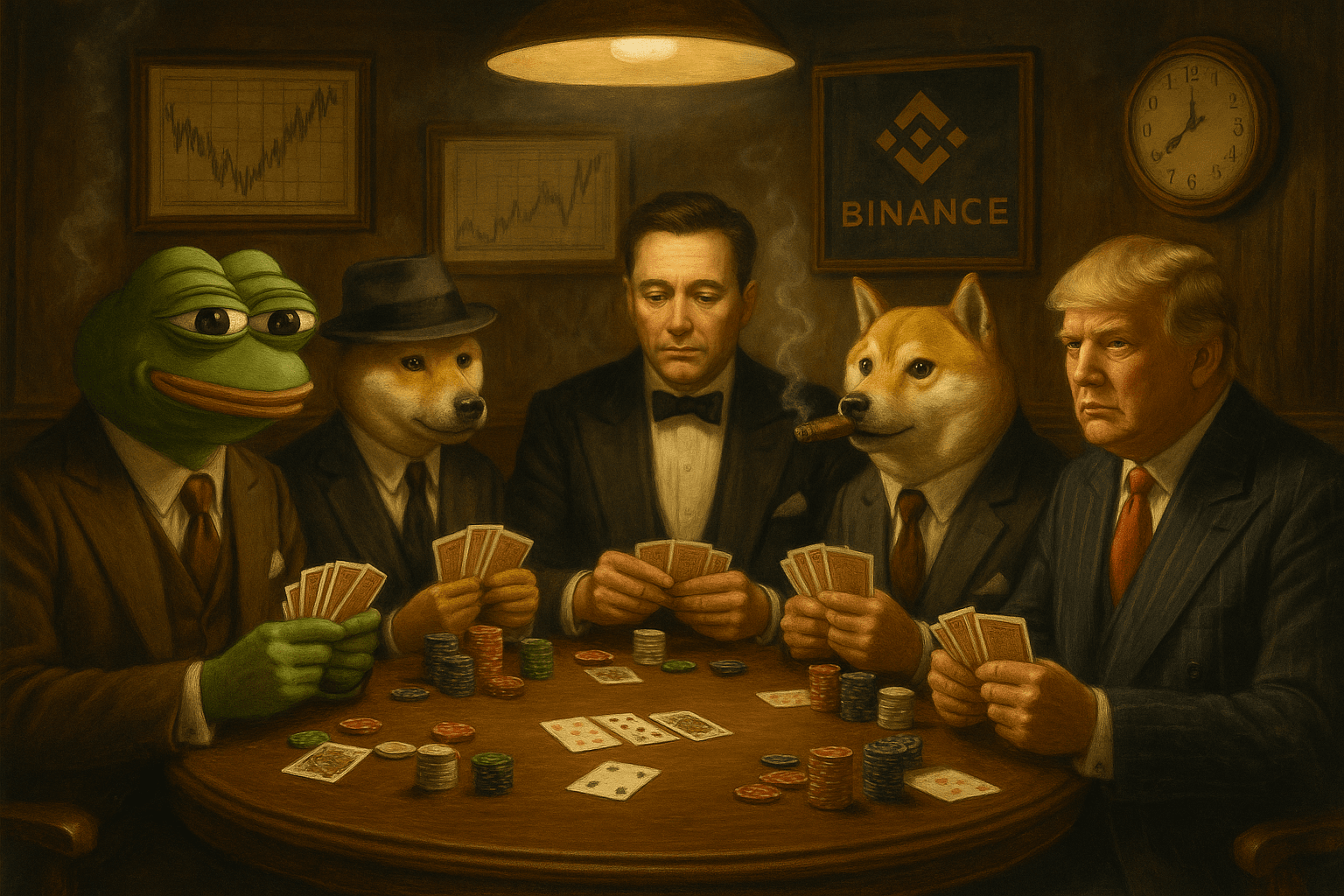 La trasmissione dal futuro suona forte: “Il mercato è un tavolo da poker, e le criptovalute sono le chip che tutti vogliono prendere.” 🎲🔥🐸 Ogni eroe – PEPE, SHIBA, DOGE, Elon e Trump – è una carta simbolica che il dealer (mercato) distribuisce senza pietà! 🃏💥🤜 Sai, toro, quali carte hai in mano? Stai bluffando o giochi al cento per cento? 😂🐂💸