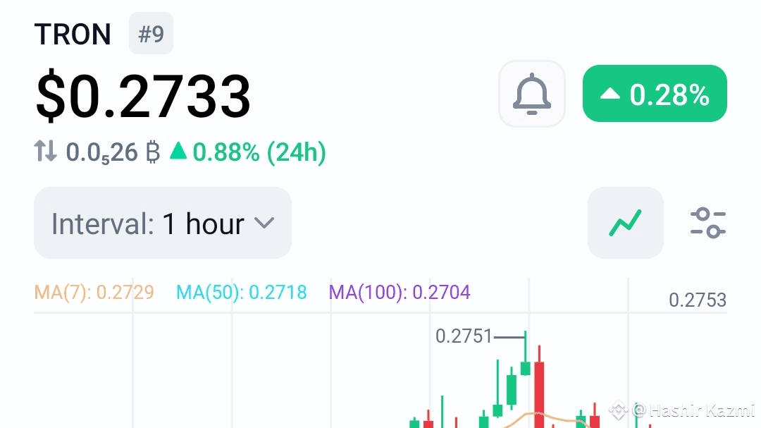 A partire dal 5 giugno 2025, TRON (TRX) sta negoziando a circa $0.2733 USD, riflettendo un modesto aumento dello 0,26% nelle ultime 24 ore. L'intervallo di negoziazione del giorno ha visto un massimo di $0.2748 e un minimo di $0.2715.