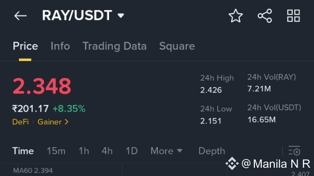 Prezzo Attuale: Raydium ($RAY ) sta negoziando vicino a $2.36, in aumento di circa 9.3% rispetto alla chiusura precedente, all'interno di un intervallo di $2.16–$2.42 oggi.