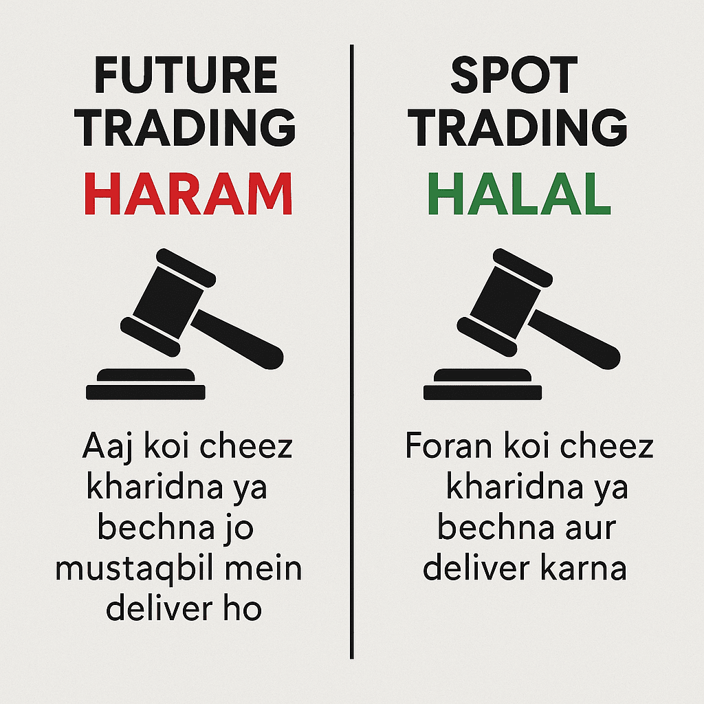 “Il trading futures in cui il bene non è in possesso, e si guadagna solo dal movimento dei prezzi, è considerato haram secondo la Shari'a. È halal solo il commercio in cui il bene è realmente presente e lo scambio avviene immediatamente.”