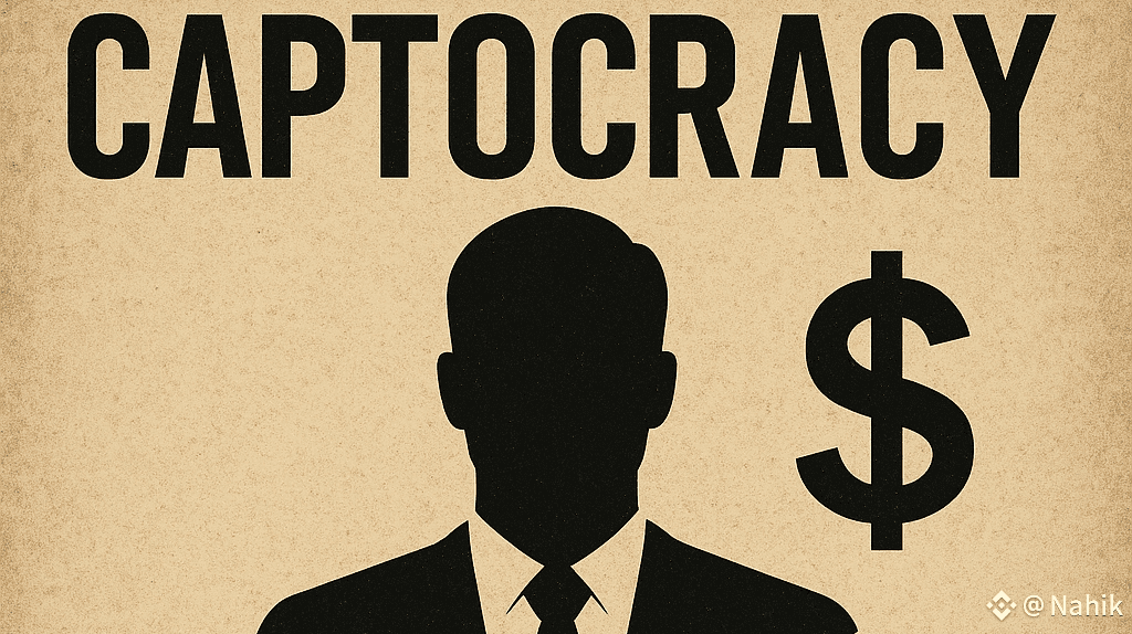 Negli ultimi decenni, il termine "captocrancy" ha guadagnato terreno tra i teorici politici, economisti e attivisti preoccupati per l'influenza crescente delle corporazioni nella formazione delle politiche pubbliche, nella legislazione e persino nei valori delle società democratiche. Un mix di "capitalismo" e "autocrazia" (o "kratos", greco per potere), il captocrancy si riferisce a un sistema di governo in cui il potere corporativo prevale sulla volontà democratica del popolo.