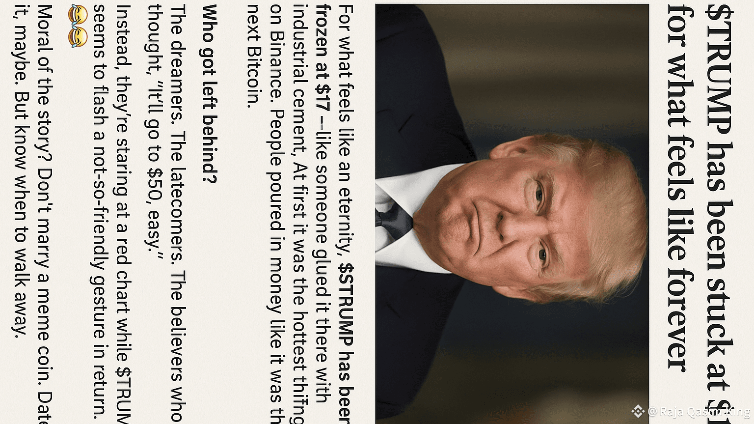 Per quello che sembra un'eternità, $TRUMP è stato bloccato a $17—come se qualcuno l'avesse incollato lì con cemento industriale. All'inizio, era la cosa più calda su Binance. La gente ha investito denaro come se fosse il prossimo Bitcoin.