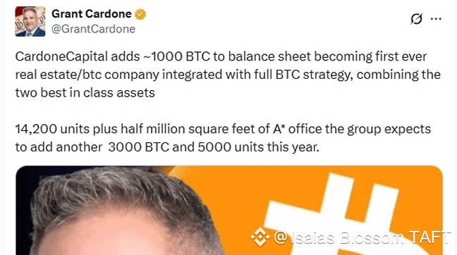 Cardone Capital ha aggiunto 1.000 bitcoins al suo bilancio, diventando la “prima azienda immobiliare/Bitcoin integrata con una strategia completa di BTC”, ha detto il CEO Grant Cardone su X sabato.