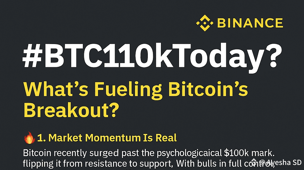 Bitcoin ha fatto un balzo, e dopo aver sfondato i livelli di resistenza chiave, $110,000 non sembra più una fantasia — sembra imminente. Che tu sia un trader esperto o semplicemente curioso sulle crypto, ecco un rapido riepilogo di cosa sta spingendo BTC nella stratosfera 👇