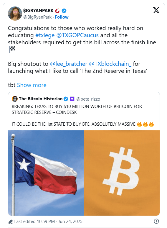 “Le basi che abbiamo gettato negli ultimi anni hanno contribuito a spianare la strada per questa svolta,” ha detto Bratcher. “Il nostro successo si è radicato negli anni di costruzione di fiducia con i legislatori, demistificare Bitcoin e collegarlo a valori fondamentali come il conservatorismo fiscale, la sovranità e l'innovazione energetica.”