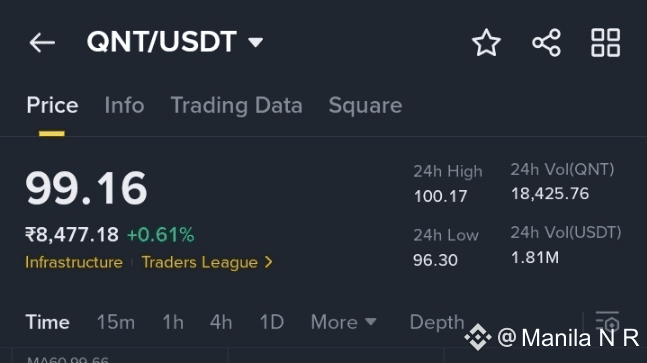 Quant (QNT) scambia intorno a \$99.49, leggermente più alto oggi, in un intervallo giornaliero di \$96.42–\$99.99.