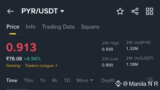 PYR scambia attorno a \$0.92, in aumento di \~6% oggi, in un intervallo intraday di \$0.87–\$0.94; guadagno di 7 giorni \~9%.