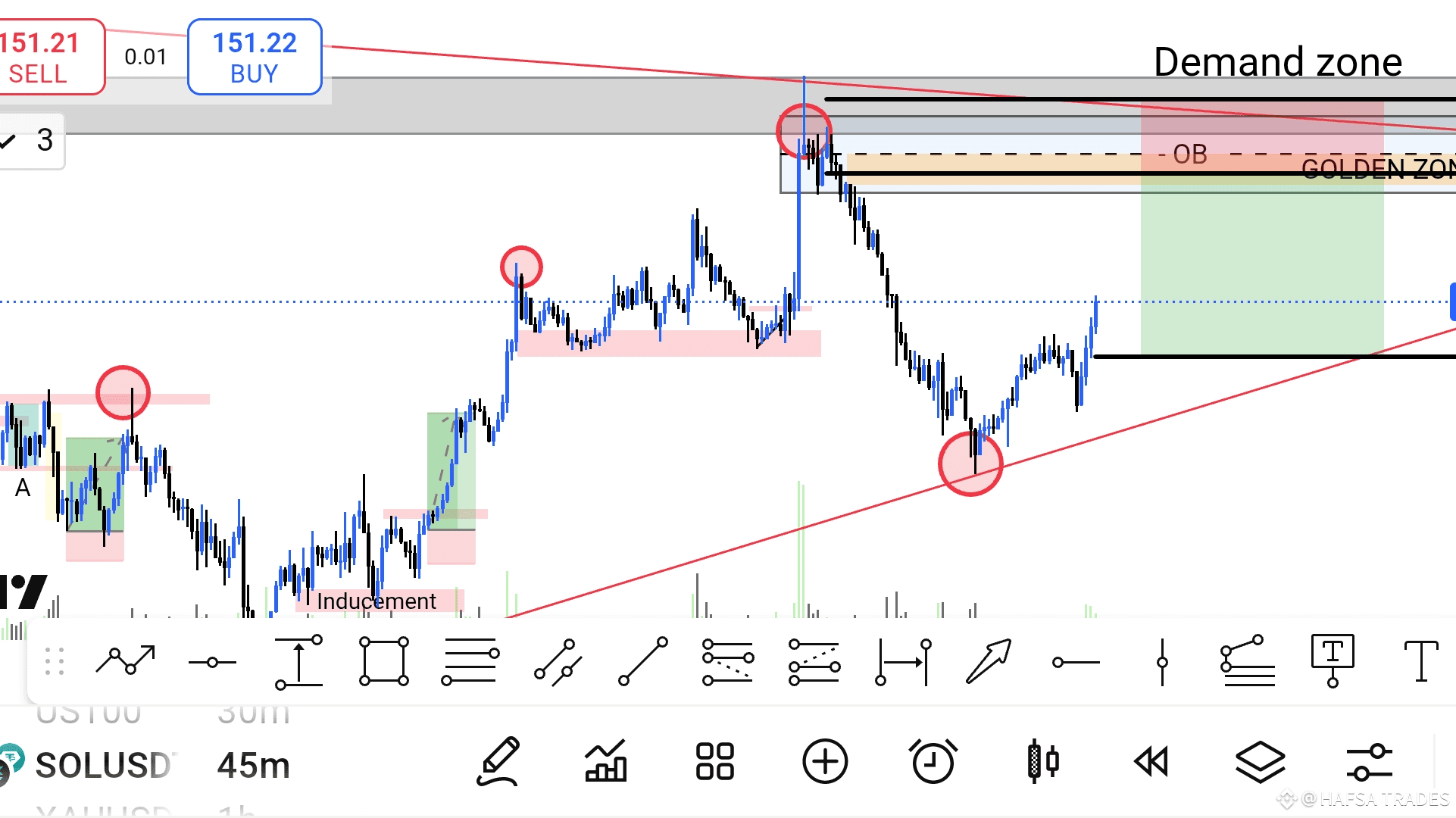 Questo è un trade con un rapporto di uno a tre su Solana. Dovresti prenotare metà del tuo profitto a un rapporto di 1:1 e spostare il tuo stop loss al punto di ingresso.