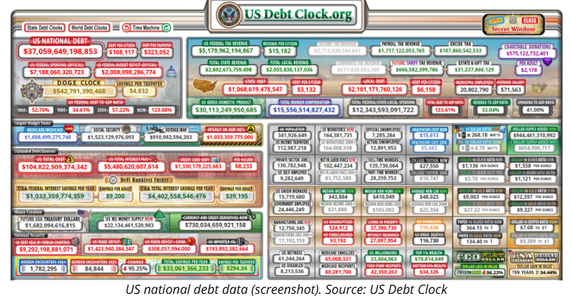 “Per mettere questo in prospettiva, all'inizio del 2020, il debito totale degli Stati Uniti era di $23,2 trilioni. Questo segnerebbe un aumento di quasi $17 TRILIONI in 6 anni,” ha scritto la risorsa di trading The Kobeissi Letter in parte di un'analisi recente sull'argomento.