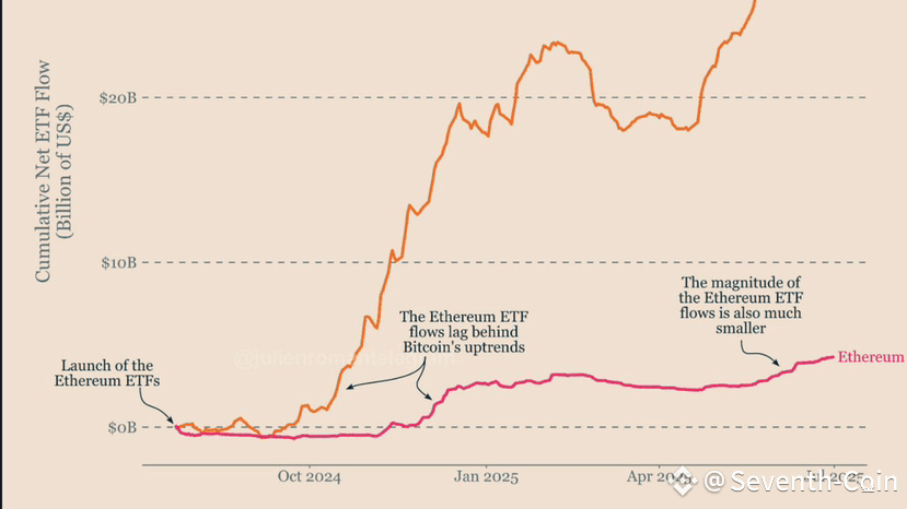 Come si può vedere dal grafico del giorno, gli ETF del Bitcoin hanno catturato MOLTO più capitale di quelli di Ethereum.