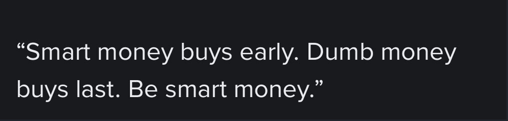 “Il denaro intelligente compra presto. Il denaro stupido compra per ultimo. Sii denaro intelligente.”